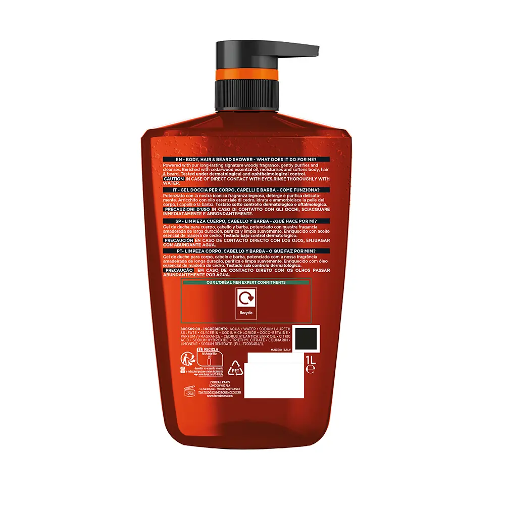 | Ingrédients | aqua / eau sodium laureth sulfate glycérine sodium chloride coco-betaine parfum / fragrance huile d'écorce de cedrus atlantica acide citrique hydroxyde de sodium citrate de triéthyle coumarine limonène benzoate de sodium (fil z70064114/1). |
